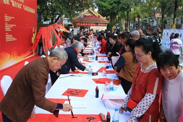 1月30日,由州政协文化文史和学习委员会联合州文化和旅游局、州总工会主办的“万福迎春——2026年州政协委员履职‘服务为民’写春联送祝福”活动,在州图书馆门前热闹启幕。