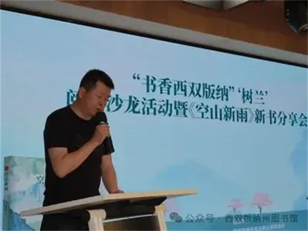 《空山新雨》由四川文艺出版社于2026年1月出版,收录五十余篇散文,以“云南漫时光”“行走的光阴”“边地印记”“岁月如歌”四个板块,记录了作者在湘滇两地,特别是西双版纳的行走见闻与思考,用细腻笔触描绘了边疆的自然风物、人文风情与时代变迁。从滇中坝子到西双版纳的热带雨林,从市井烟火到边地风情,每一篇文字都是一段未曾褪色的记忆,一次与生活的深情对话。 作家周佳在分享中透露,其创作源于对“文字质感”的执念和对生活的深情对话。在着重描写西双版纳的篇章“边地印记”中,他从基诺山的太阳鼓、易武茶山的茶香到澜沧江的夜色,深入刻画了当地的民俗与人文。他坚持书写真实、个人的沉浸式体验,无论是傣医的智慧还是布朗族的节庆,都力求通过文字搭建一座让读者走进边地、感知其独特魅力的桥梁。 中国作家协会会员、西双版纳州作协主席存一榕点评时说:“在《空山新雨》里就收入了他写西双版纳的九篇散文,可以说这些作品里涌动着澜沧江波涛,散发着热带雨林的清香,弥漫着西双版纳浓郁的边地气息。这是他用脚步丈量这片土地的成果,也是他留在这片土地上一串抹不掉的脚印。” 西双版纳州文艺评论家协会主席马娅姗在点评中指出,周佳对西双版纳风物热爱而熟悉,其作品以抒情内敛、真实鲜活且富有诗性的语言,向读者倾诉了真挚情感,令人触动。 分享会尾声,周佳作为倡议人,宣读了《全民阅读倡议书》,呼吁大众以书为友,让阅读融入日常生活,共同助力边疆文化事业蓬勃发展。 本次活动是西双版纳州促进全民阅读、滋养边疆文化土壤的一次生动实践。通过作家分享、读者互动与赠书仪式,营造了浓厚的阅读氛围,助力“书香西双版纳”建设,让阅读成为凝聚文化认同、铸牢中华民族共同体意识的有效纽带。 周佳,湖南省娄底市人,中国散文学会、云南省作家协会、湖南省诗歌学会会员,昆明开明文学院副院长,作品见于《民主》《边疆文学》《云南日报》《湖南诗歌》等报纸杂志,出版诗集《太阳鸟》。