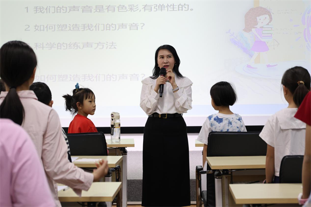 本次公益课由梁旭老师主讲。课堂上,梁老师以生动有趣的教学方式,带领孩子们学习科学发声、朗读技巧、形体仪态与语言表达,从发音、停顿、节奏到舞台仪态逐一细致指导,让孩子们在轻松愉悦的氛围中敢于开口、乐于表达。