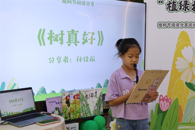 活动现场,小朋们依次登台分享,带来了精彩的知识讲解、故事讲述与古诗朗诵。孩子们用清脆的声音分享树木的作用、小树的成长,用诗意语言描绘春日美景,自信大方、表达流畅,展现出新时代少年的风采,赢得了现场阵阵掌声。
