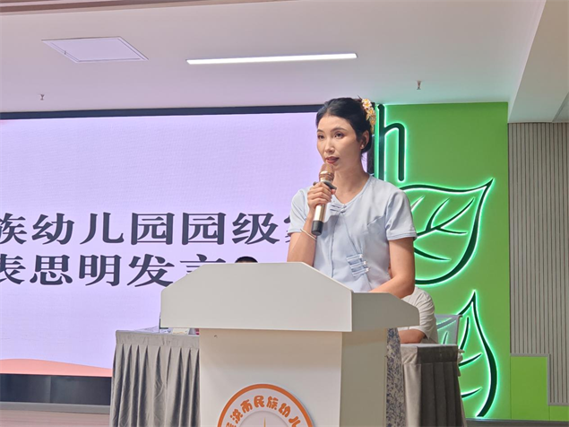 活动上,景洪市民族幼儿园园长希丽纳致辞,介绍“汇融共生·和合共美”办园理念与民族文化教育实践,对各方支持表示诚挚谢意。州图书馆馆长周杨鑫指出,“贝叶”承载傣族千年文脉,“阅迈”意为傣语“新芽”,项目紧扣铸牢中华民族共同体意识主线,推动本土民族文化与阅读教育深度融合。新城社区、家委代表相继发言,全力支持家园社协同育人工作。