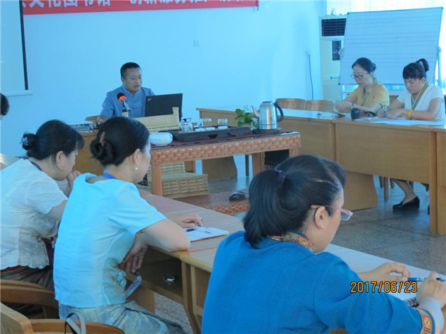 2017年6月23日,州图书馆组织全馆党员职工开展学习“两学一做”,学党章党规,学系列讲话,做合格党员”教育活动。学习教育形式以集中原文学习、自学、观看视频相结合。