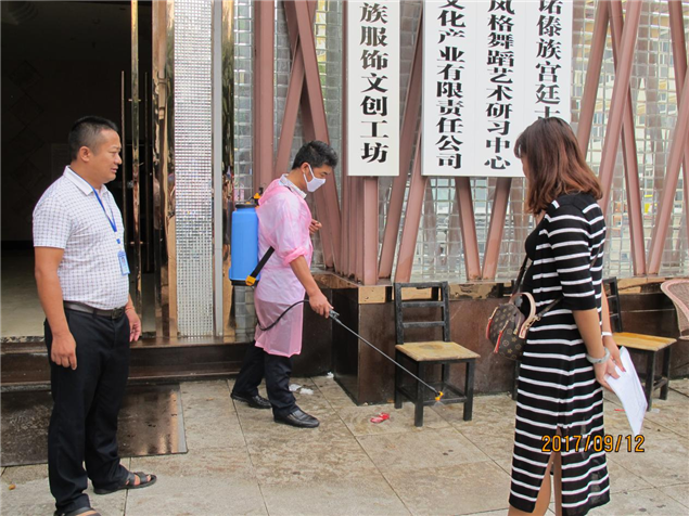 自2017年9月1日开展登革热网格化防控工作以来,州图书馆馆长周杨鑫带领工作人员,到本单位办公楼周边商铺及金鹿街社区、真爱KTV等网格化区域,积极开展每周3次的入户宣传检查工作和进行喷洒灭蚊药工作。